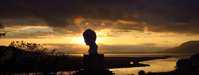 La mattina dopo andiamo a fare una passeggiata sul lungomare, dove ci accoglie un vento freddo e umido che disturba il nostro girovagare e la graziosissima vista sulla baia. Se non fosse nuvoloso, probabilmente si vedrebbe anche la vicina isola di Corfù, ma non siamo così fortunati. Dopo un pranzo veloce, ci avviamo in macchina verso il parco nazionale di Butrinto, patrimonio dell’UNESCO, dove visitiamo un coacervo di monumenti che vanno dal tempio ellenistico, alle terme romane, al battistero di epoca paleocristiana e alla fortezza Veneziana, il tutto immerso in un bellissimo parco con un lago davvero suggestivo, che si presta a foto romanticissime, soprattutto al tramonto. Da proposta di matrimonio, io lo dico…e provate a smentirmi.