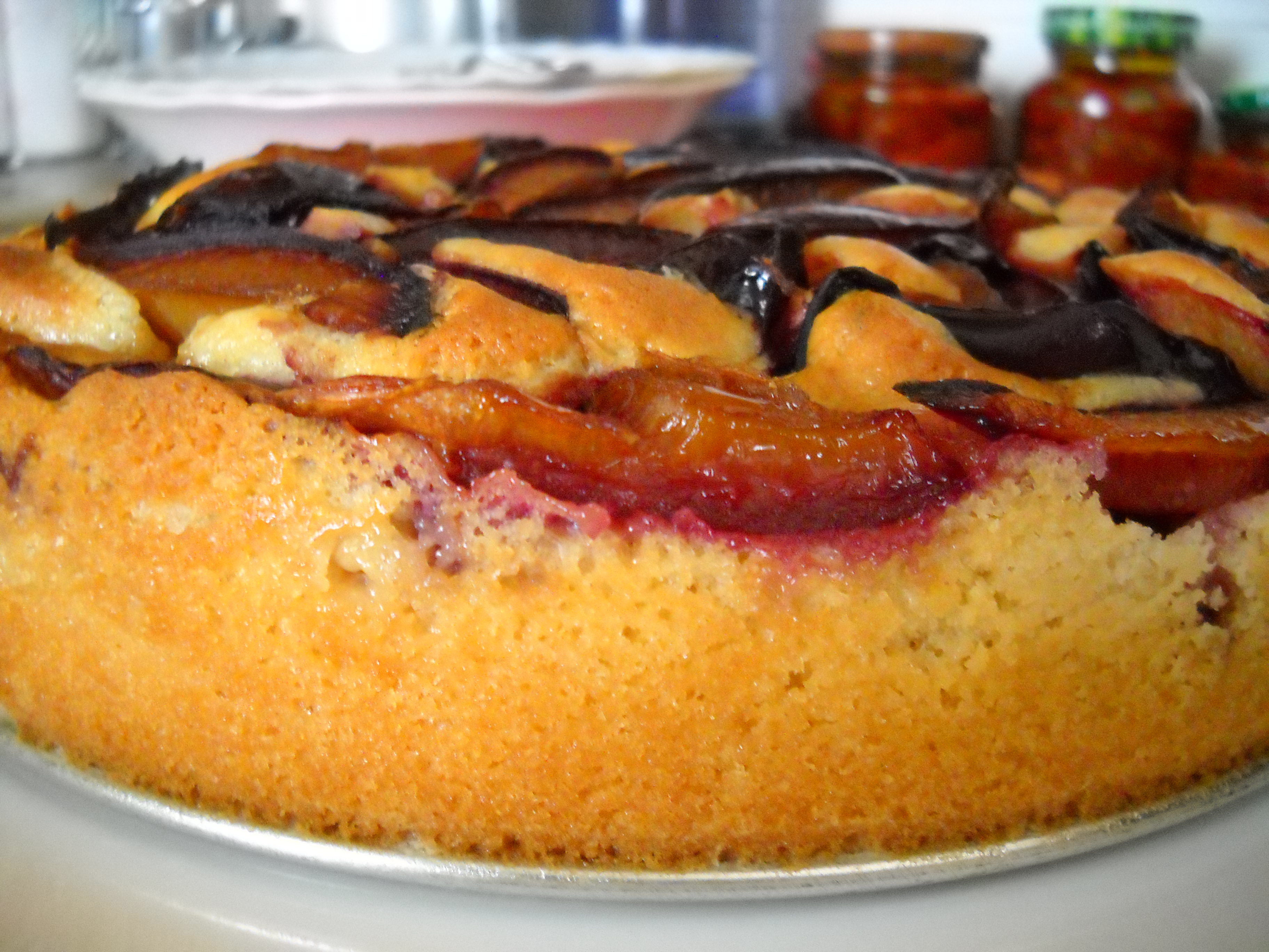 6) versare il composto in una teglia con bordo smontabile e aggiungere le prugne;