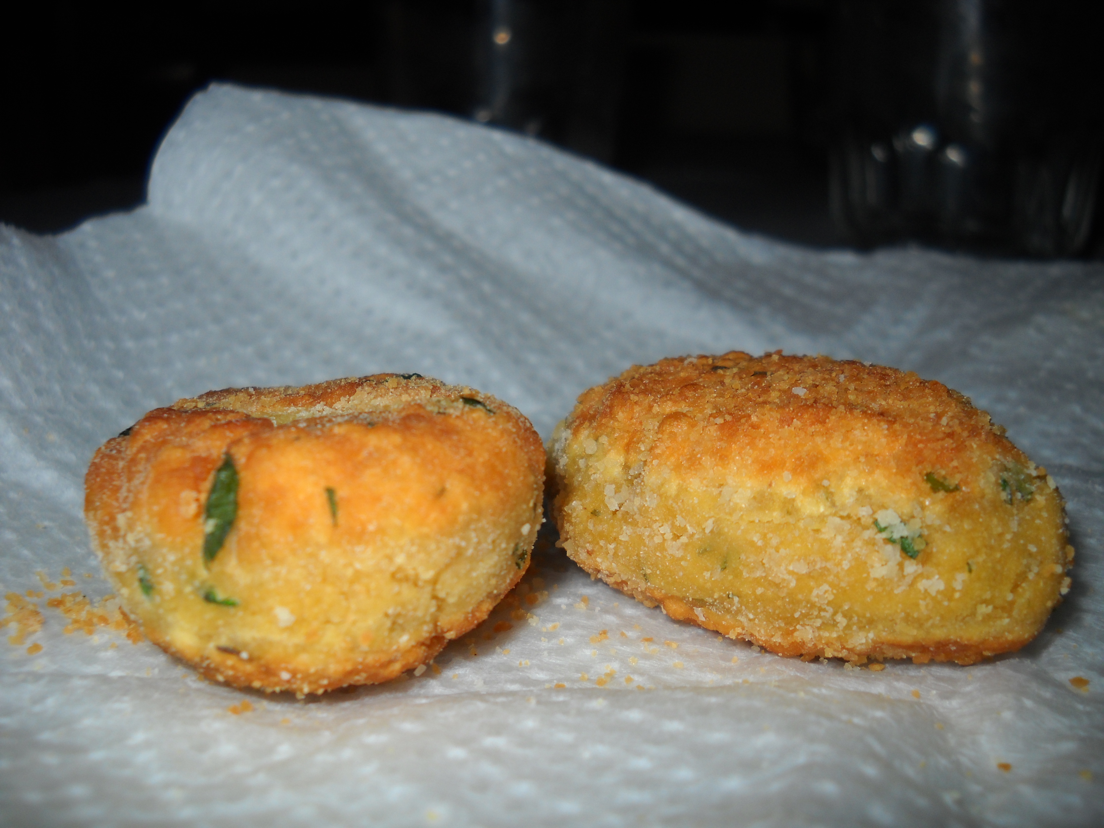 3) lasciare riposare un’oretta e formare delle polpettine schiacciate che andranno fritte nell’olio di semi di arachidi o girasole per qualche minuto.