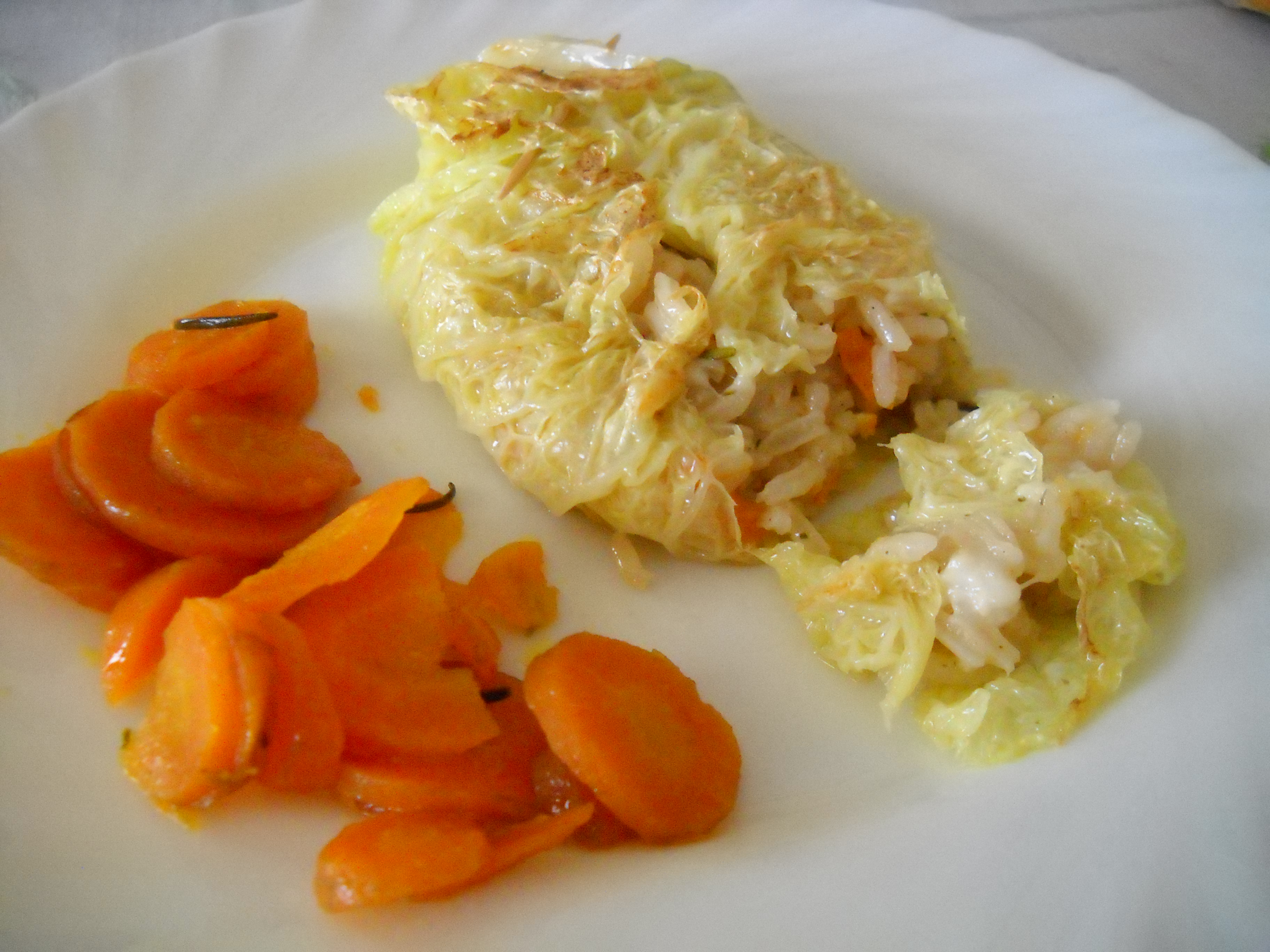 2) una volta pronto, lessarvi le foglie di cavolo verza per 2 minuti ciascuna e lasciarle asciugare su un asse;
