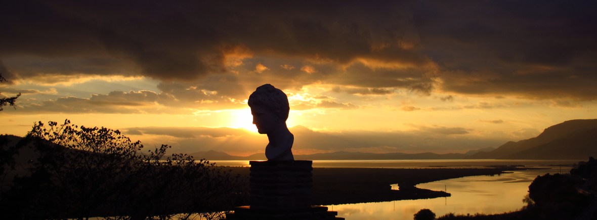 La mattina dopo andiamo a fare una passeggiata sul lungomare, dove ci accoglie un vento freddo e umido che disturba il nostro girovagare e la graziosissima vista sulla baia. Se non fosse nuvoloso, probabilmente si vedrebbe anche la vicina isola di Corfù, ma non siamo così fortunati. Dopo un pranzo veloce, ci avviamo in macchina verso il parco nazionale di Butrinto, patrimonio dell’UNESCO, dove visitiamo un coacervo di monumenti che vanno dal tempio ellenistico, alle terme romane, al battistero di epoca paleocristiana e alla fortezza Veneziana, il tutto immerso in un bellissimo parco con un lago davvero suggestivo, che si presta a foto romanticissime, soprattutto al tramonto. Da proposta di matrimonio, io lo dico…e provate a smentirmi.